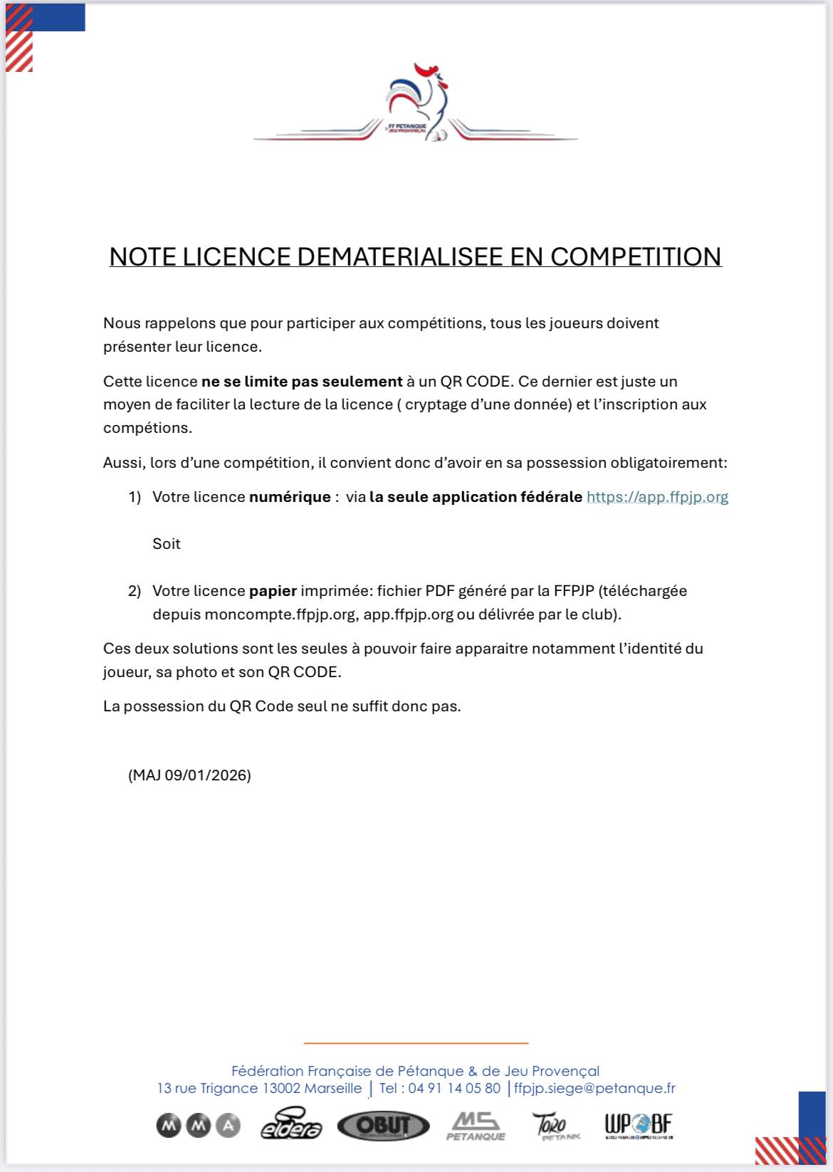 Suite au Congès Fédéral du 13 Décembre, l'instauration de la tenue sportive obligatoire (haut et bas), quel que soit le type de compétition, sera appliquée à compter du 1er Janvier 2026.Infos congrés national
