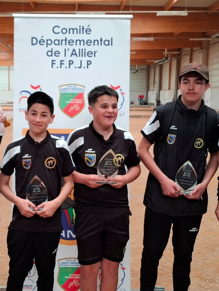 Evan GRIFFET-TUROT,(St-Félix pétanque), Mathis PERROT (St-Félix Pétanque) Mathieu PICO (Lusigny pétanque)